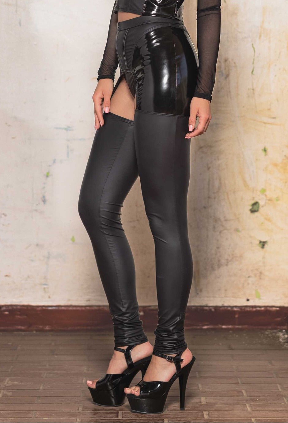 Sexy Damen Chaps - Hautenges Design aus mattem und glänzendem Lackgewebe