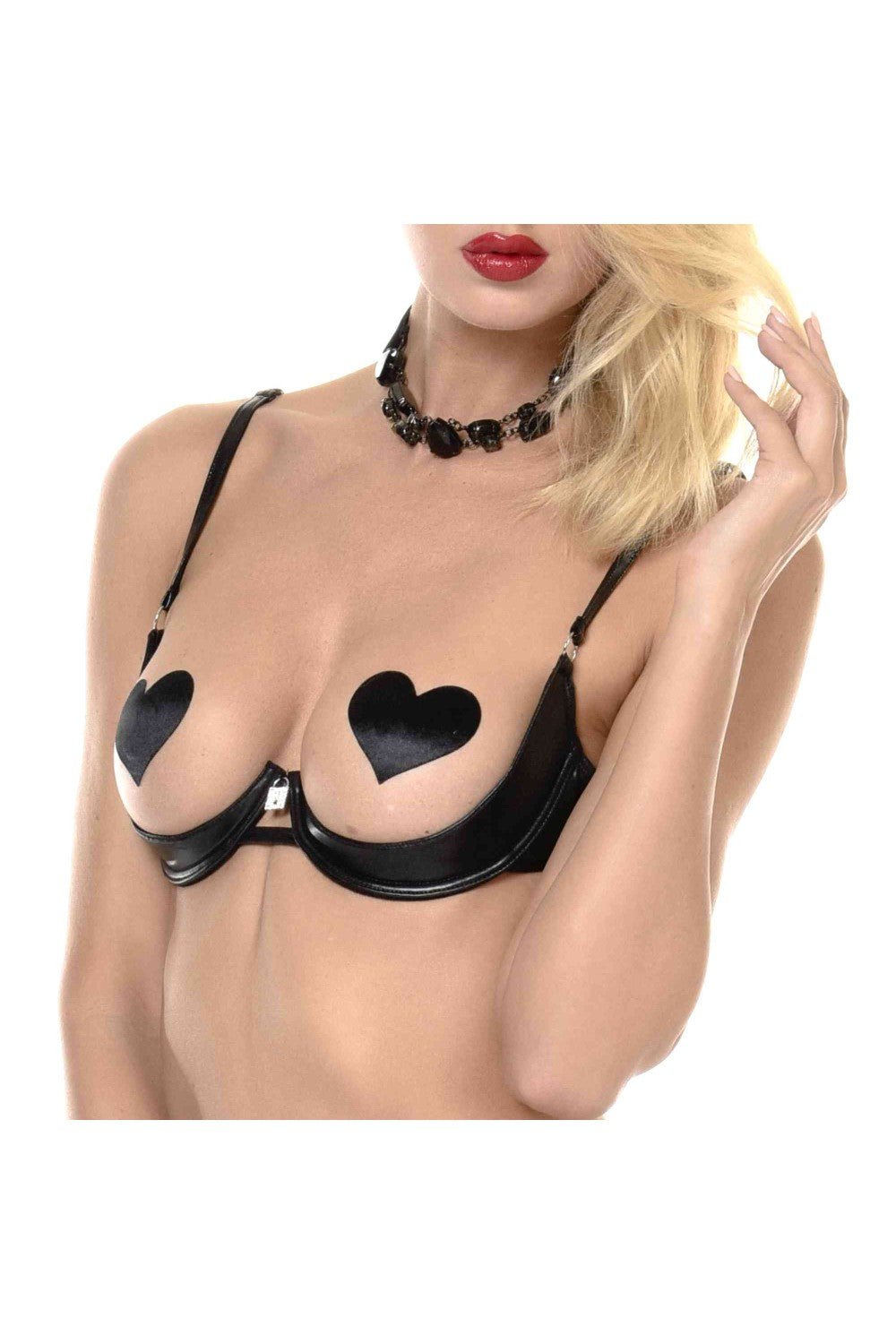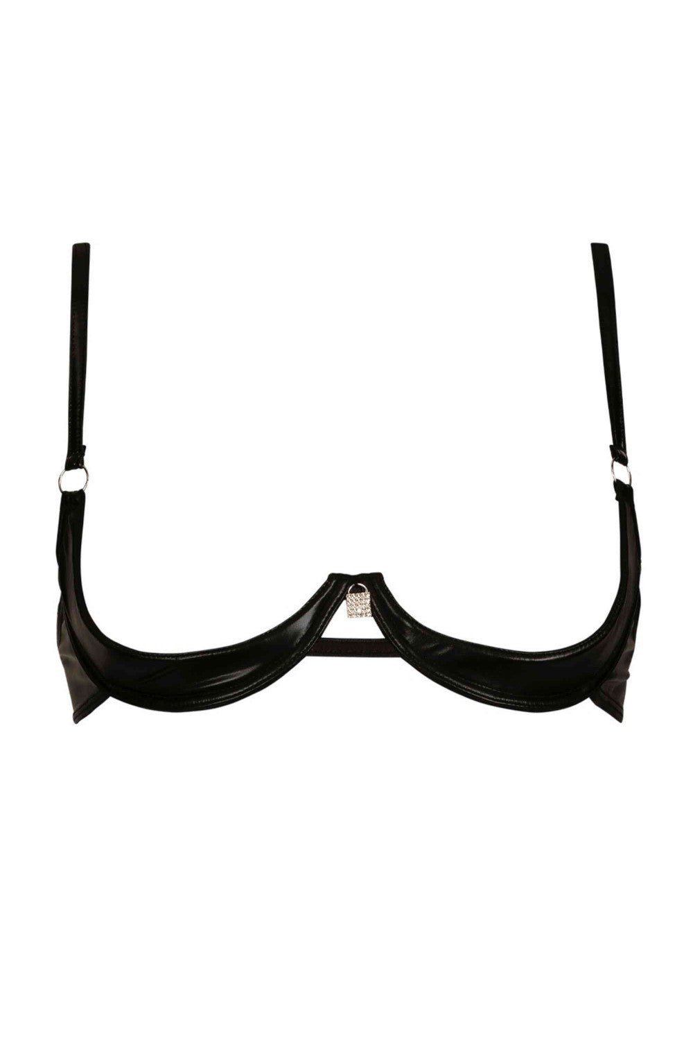 Entdecke die Eleganz der schmalen Bügel-Hebe von Patrice Catanzaro, einem sofortigen Klassiker in Deiner Garderobe. Gefertigt aus schwarzem, wetlookbeschichtetem Lycra, bietet diese Hebe nicht nur eine exzellente Passform, sondern auch einen exquisiten Look. Die Träger sind mit Metallringen versehen und ein schmückendes Strass-Schloss zwischen den Cups setzt einen glamourösen Akzent. Verstellbare Träger und Häkchenverschlüsse am Rücken sorgen für optimalen Komfort und eine perfekte Passform.