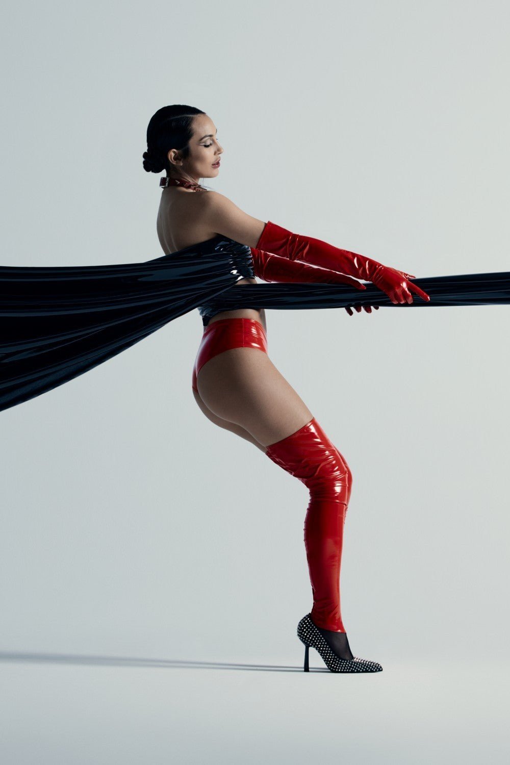 Provokante Eleganz: Lange Handschuhe aus glänzendem Lack