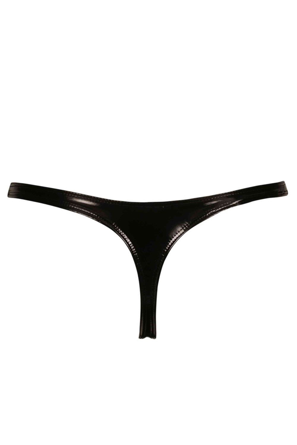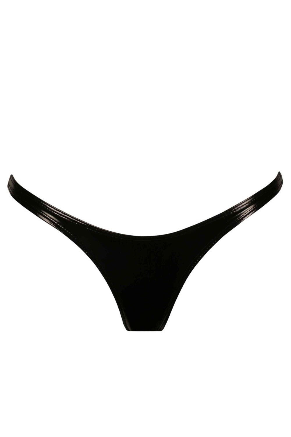 Verlockende Verführung: Der glänzende schwarze Lack-String von Patrice Catanzaro ist ein absolutes Must-have für alle, die sich unwiderstehlich fühlen möchten. Mit seinem taillierten Schnitt und dem verführerischen Triangel hinten bringt dieser String deine Sinnlichkeit perfekt zum Ausdruck.