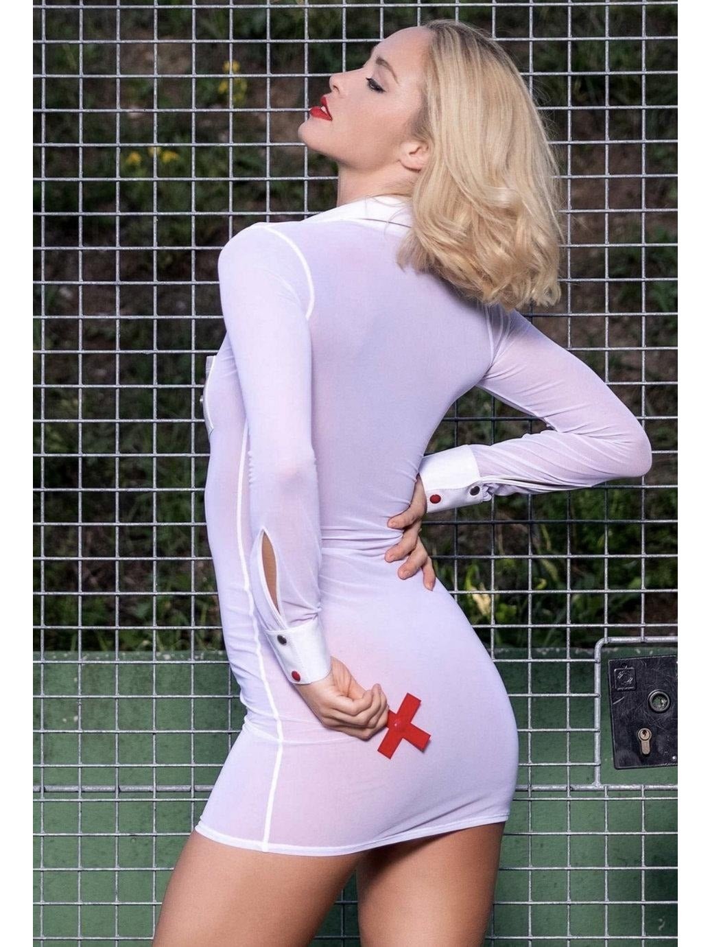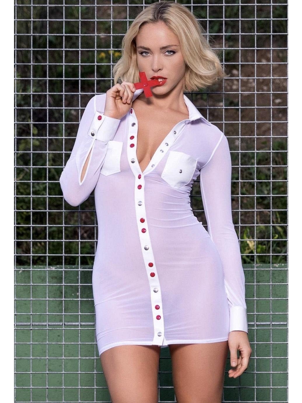 Das Kleid Neige zeichnet sich nicht nur durch sein einzigartiges Design aus, sondern auch durch seine vielseitigen Tragemöglichkeiten. Aufgesetzte Taschen auf der Brust und das abnehmbare rote Kreuz ermöglichen es Ihnen, das Kleid in ein verführerisches Krankenschwestern-Outfit zu verwandeln.
