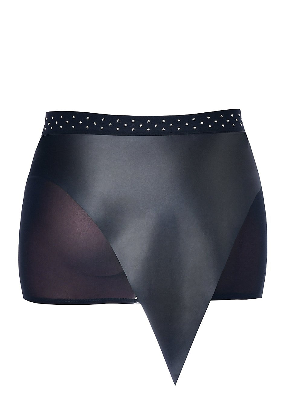 Der Mini Rock von Patrice Catanzaro ist aus hochwertigem Wetlook-Gewebe mit Mesh gefertigt.