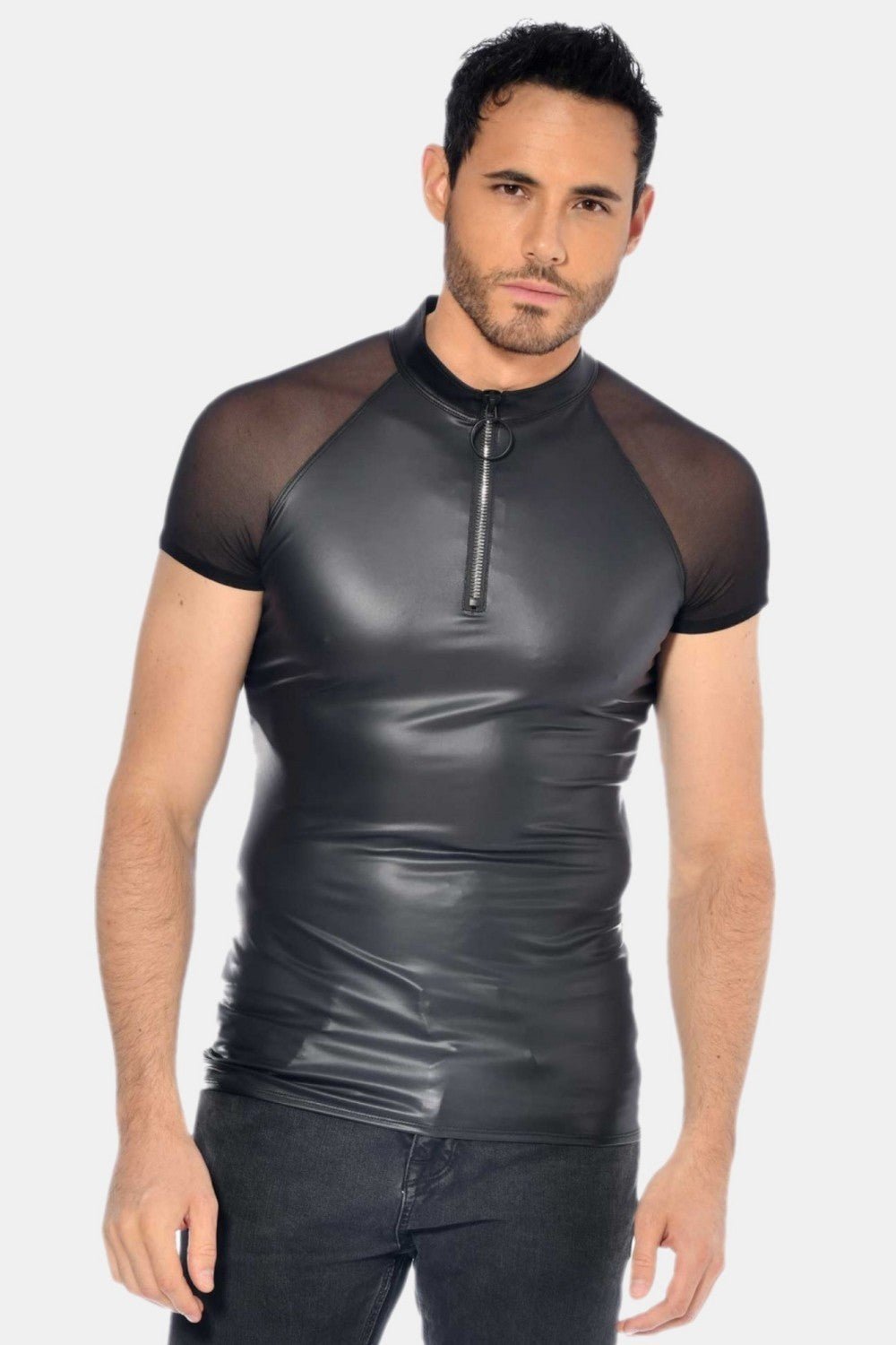 Erlebe die einzigartige Kombination von Stil und Komfort mit dem Herren T-Shirt aus Wetlook von Patrice Catanzaro. Dieses exklusive Kleidungsstück hebt sich durch sein dehnbares Wetlook-Gewebe und die feinen Mesh-Ärmel hervor, die einen interessanten Kontrast bieten.