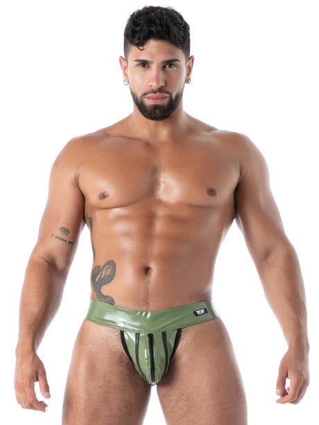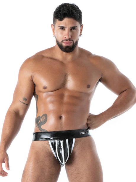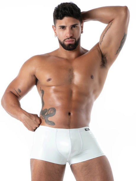 Die Datex-Kollektion von TOF Paris verbindet die intensive Optik von Latex mit dem hohen Tragekomfort moderner Stretchmaterialien. Die hautengen Schnitte und hochglaenzenden Oberflaechen sorgen fuer eine markante, maskuline Ausstrahlung und setzen den Koerper gezielt in Szene – ohne die Einschraenkungen klassischer Latexkleidung.