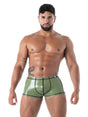 Der Latex-Trunk aus Datex in Khaki von TOF Paris verbindet sinnliche Ausstrahlung mit modernem Stil. Der körpernahe Second-Skin-Schnitt schmiegt sich eng an Hüfte und Oberschenkel und betont deine Silhouette mit klarer, maskuliner Präsenz.