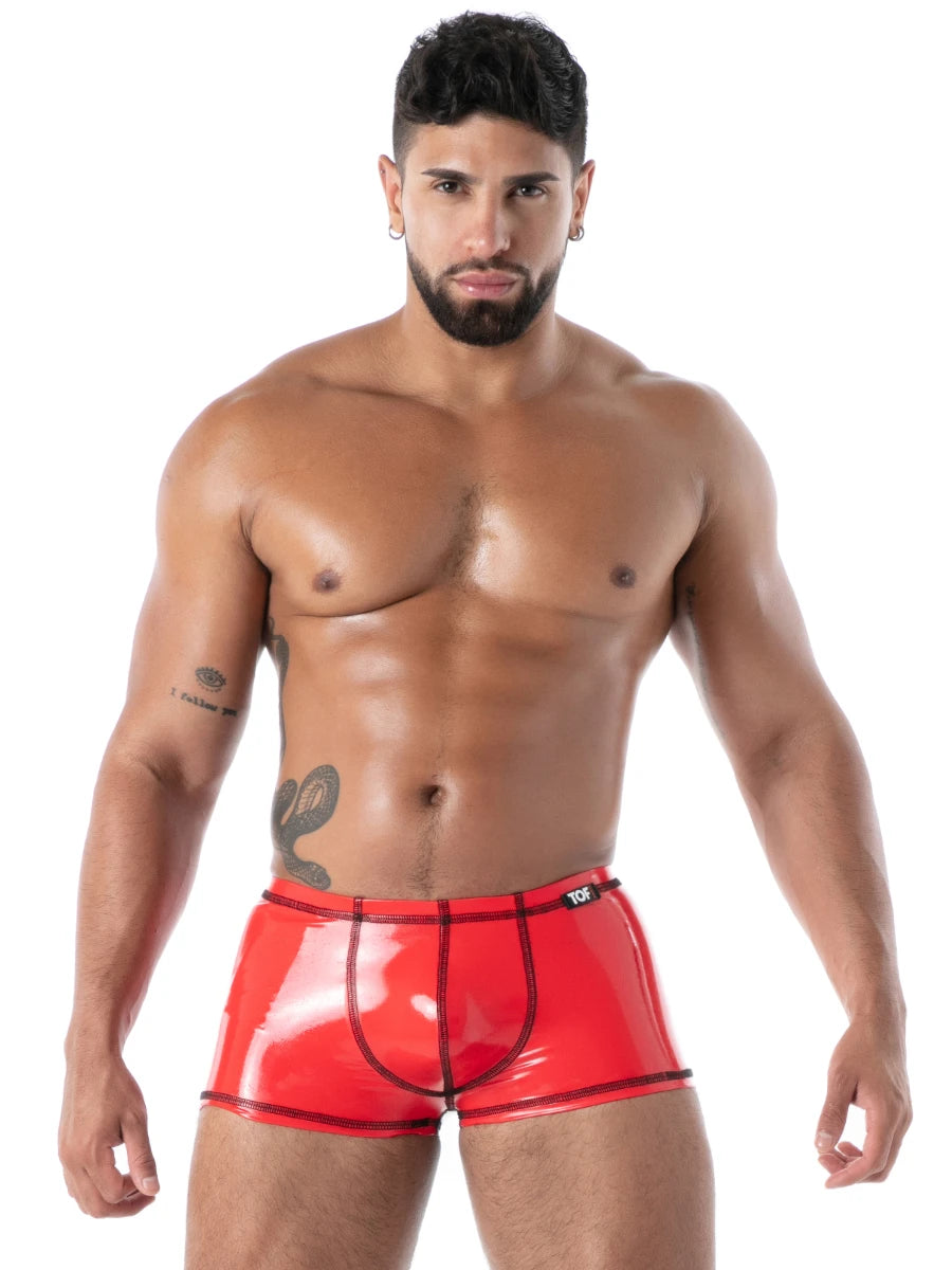 Der Datex-Trunk in Rot von TOF Paris steht für Energie, Leidenschaft und kompromisslose Präsenz. Der körpernahe Second-Skin-Schnitt schmiegt sich eng an Hüfte und Oberschenkel an und betont deine Silhouette mit kraftvoller, maskuliner Wirkung.
