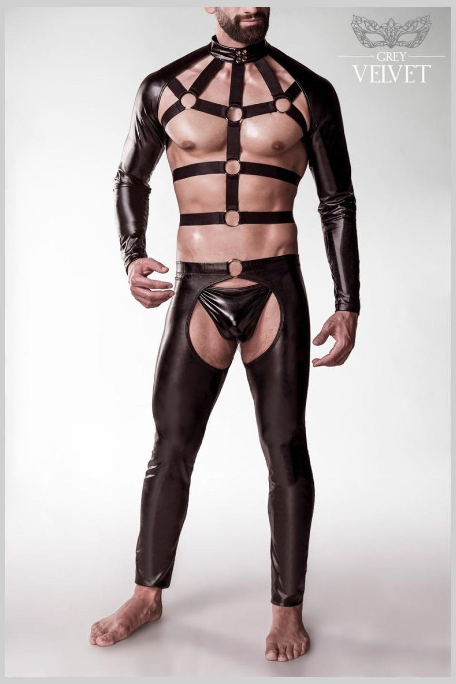 Erlebe Erotik auf höchstem Niveau mit diesem mehrteiligen Erotikset von Grey Velvet. Der Bolero aus hochwertigem Lederimitat und das Harness Oberteil aus weichen Gummibändern bieten einen angenehmen Tragekomfort, während die eng geschnittenen Chaps mit Gummibund Deine Formen betonen.