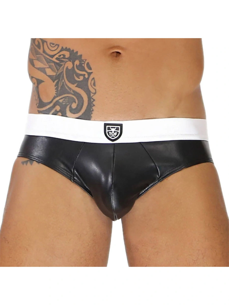 Der Fetish Brief Black n White von TOF Paris kombiniert minimalistisches Design mit maximalem Tragekomfort. Das realistisch wirkende Kunstleder-Mikrofaser-Material schmiegt sich perfekt an und betont deine maskuline Silhouette.