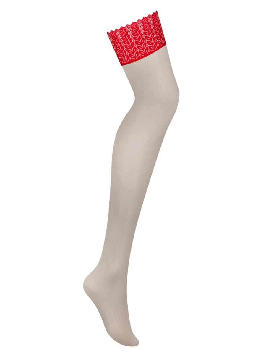 Der feine Spitzenbund in leuchtendem Rot setzt einen ausdrucksstarken Akzent und macht diesen Einstrumpf zu einem echten Blickfang. Ideal als verführerisches Detail für Dessous-Looks, besondere Anlässe oder als stilvolles Highlight für intime Momente.