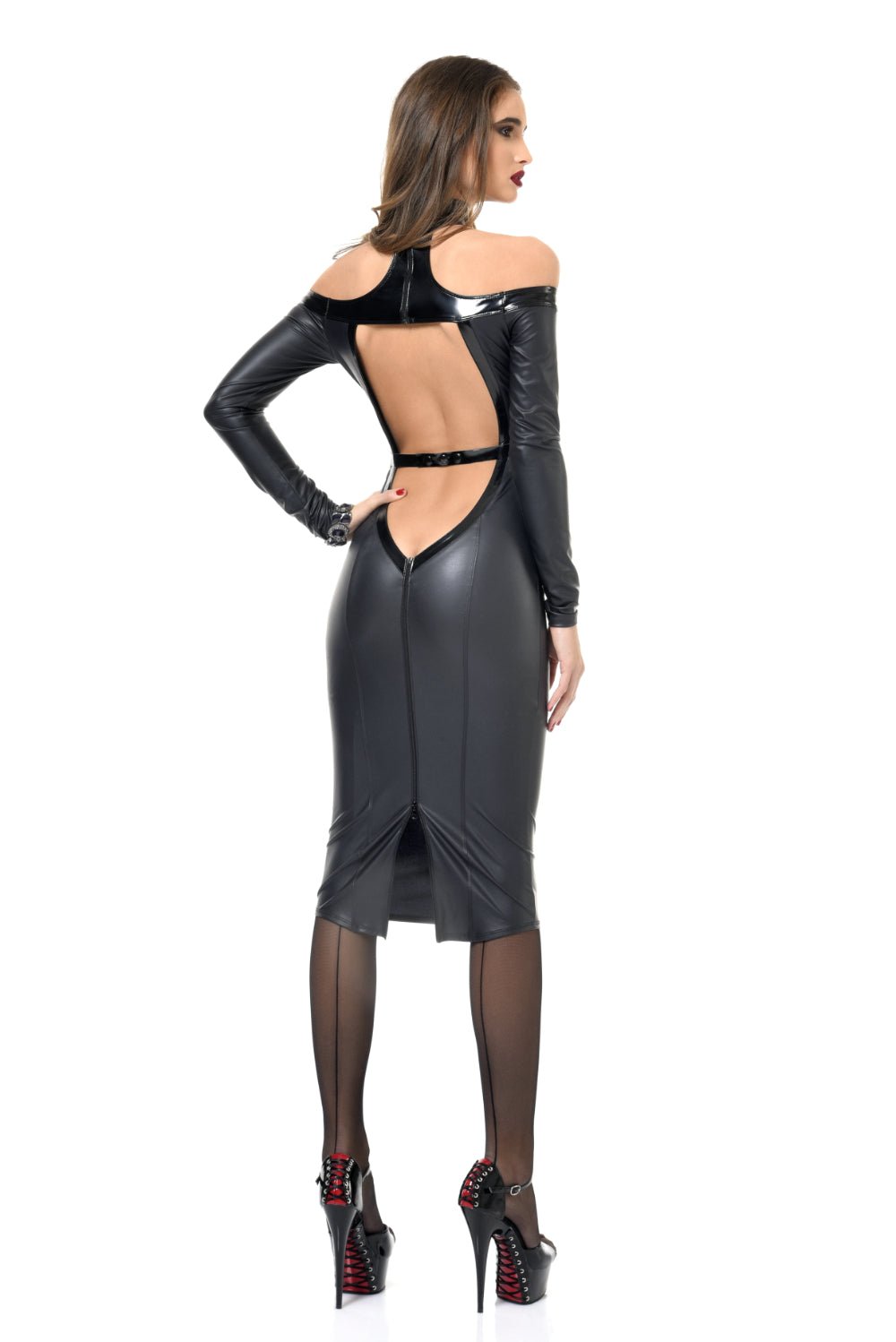 - Design: Schlanker, knielanger Schnitt mit langen Ärmeln und raffinierten Schulterausschnitten. Die Kombination aus glänzenden Lackeinsätzen auf Brust und Rücken verleiht diesem Stück eine exklusive Note.