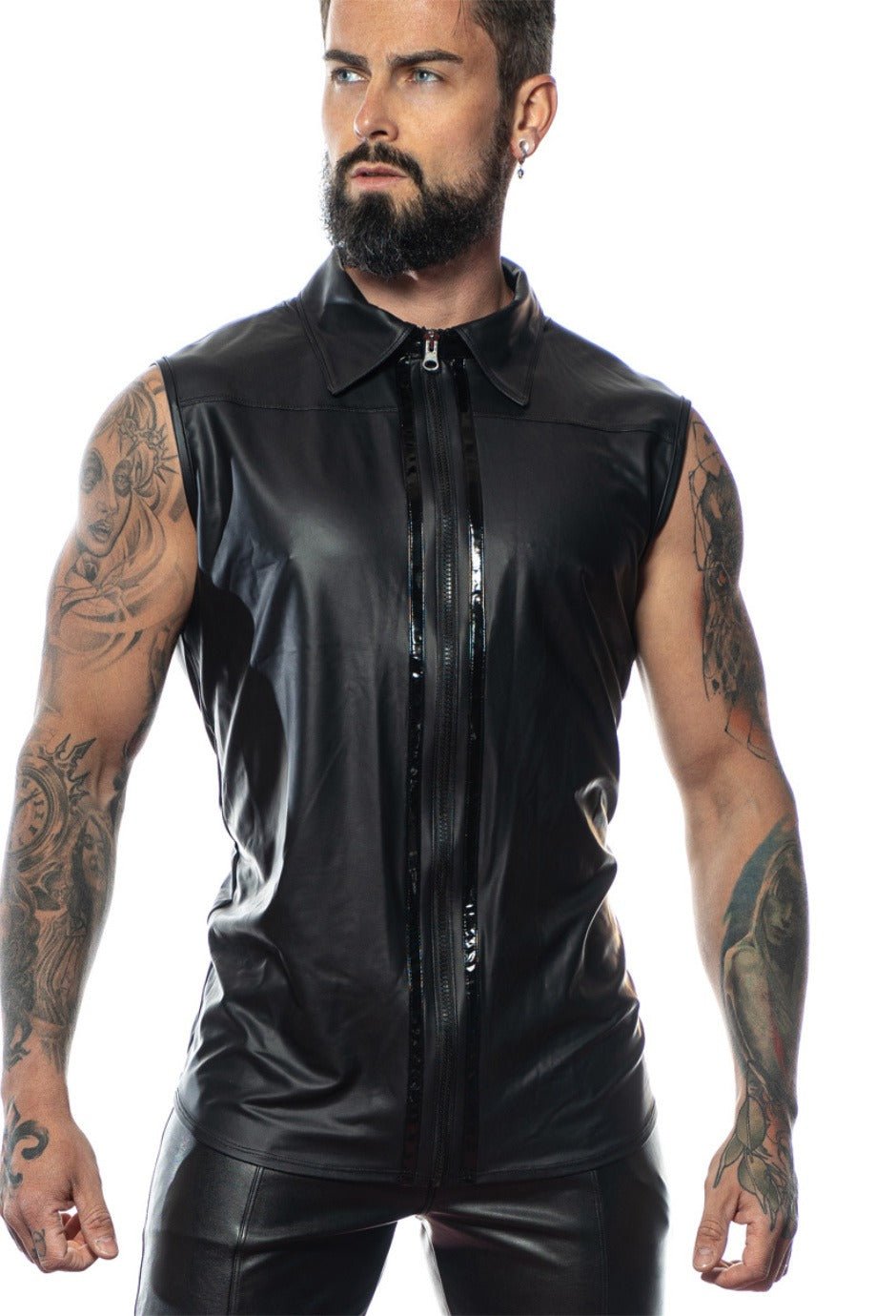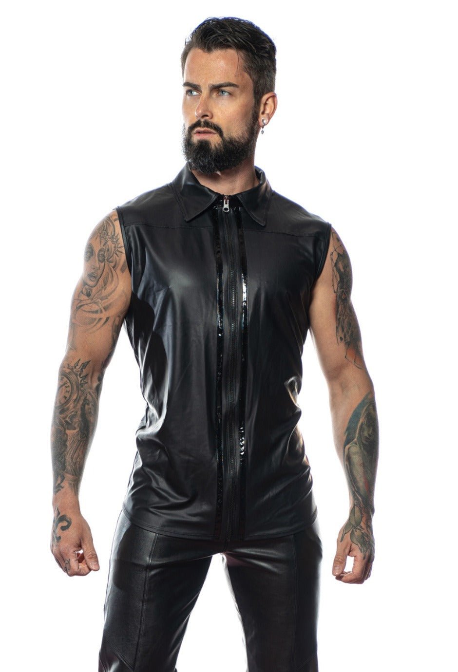 With a small collar and a smooth wet look finish, the shirt offers an appealing aesthetic that is ideal for evening events or special occasions. The patent details accentuate the design and give the shirt a striking look.