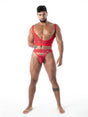 FLUID Spitzen Ultra-Thong in Rot – eine sinnliche Mischung aus Transparenz und Komfort. Der elastische Spitzenbund, die ergonomische Fronttasche und der schmale Stringrücken sorgen für einen sexy, maskulinen Look. Designed und genäht in Paris.