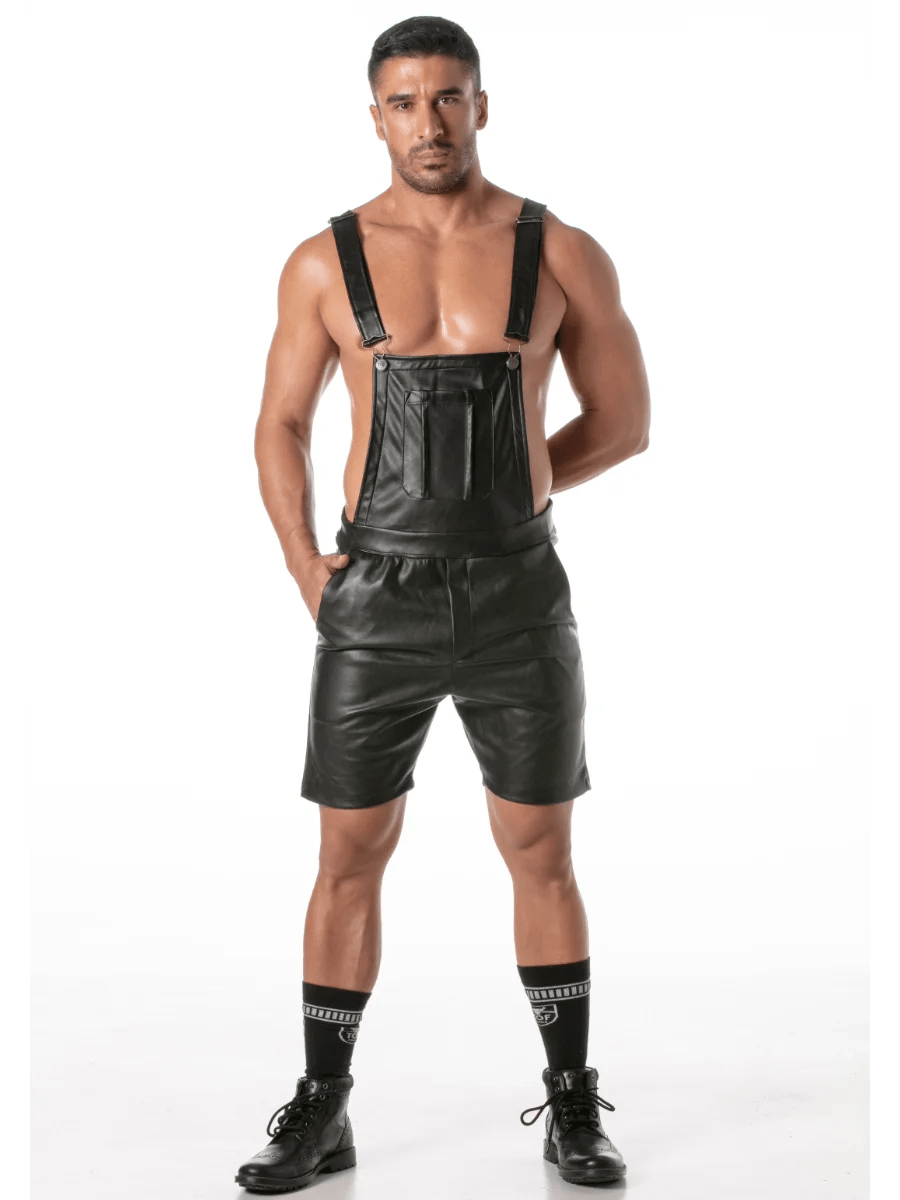 Un look saisissant avec des détails pratiques : la combinaison-short en similicuir noir de TOF Paris combine un dos profond avec des bretelles réglables, une coupe confortable et une poche fonctionnelle. Idéal pour les tenues de club, de spectacle ou fetish avec confort. Fabriqué en France.