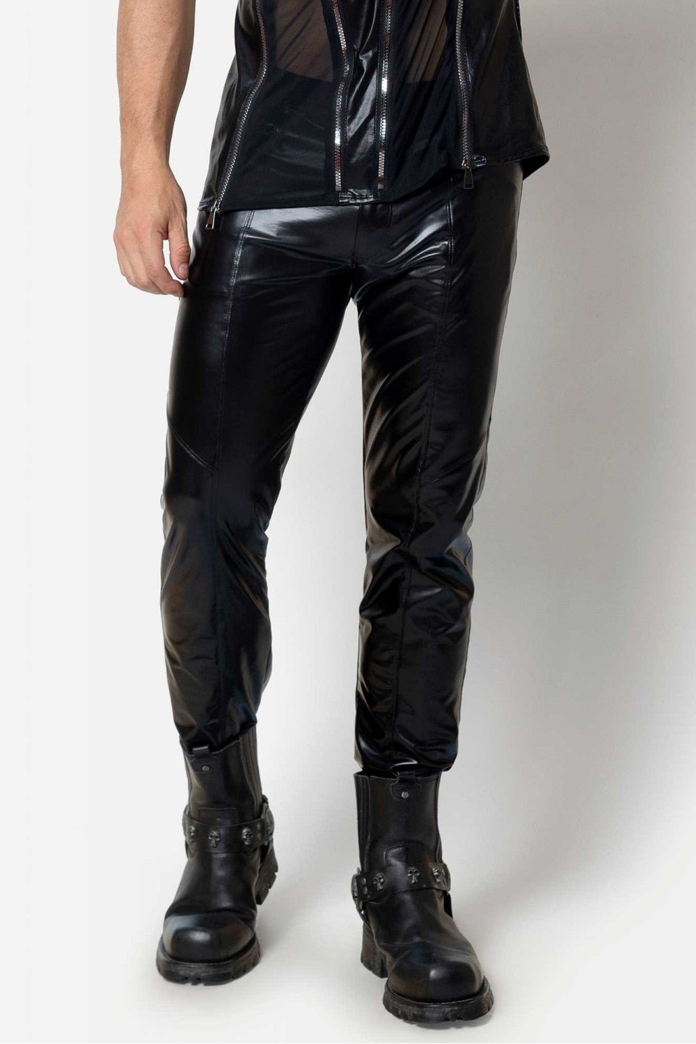 Ce pantalon au look mouillé noir élégant avec une coupe cavalier est le compagnon idéal pour vos soirées extravagantes. Leur coupe droite et leur finition mate soyeuse offrent un look attrayant, tandis que la coupe élastique et moulante assure un confort optimal.