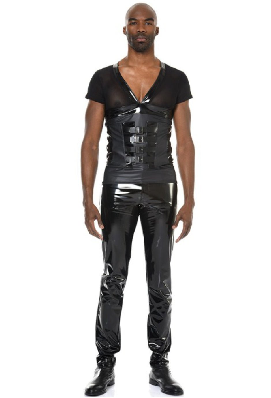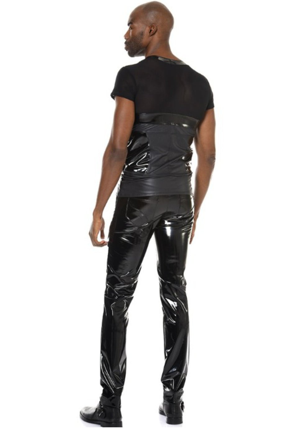 Entra nel mondo della moda lucida con i pantaloni in vernice "Shawn" di Patrice Catanzaro. Questi pantaloni da uomo sono realizzati in vernice elasticizzata ad alto lucido e offrono, grazie al loro taglio classico con vita, zip, tasche e passanti per cintura, sia stile che funzionalità. Ideali per chi cerca un capo appariscente adatto sia per eventi che per occasioni speciali.