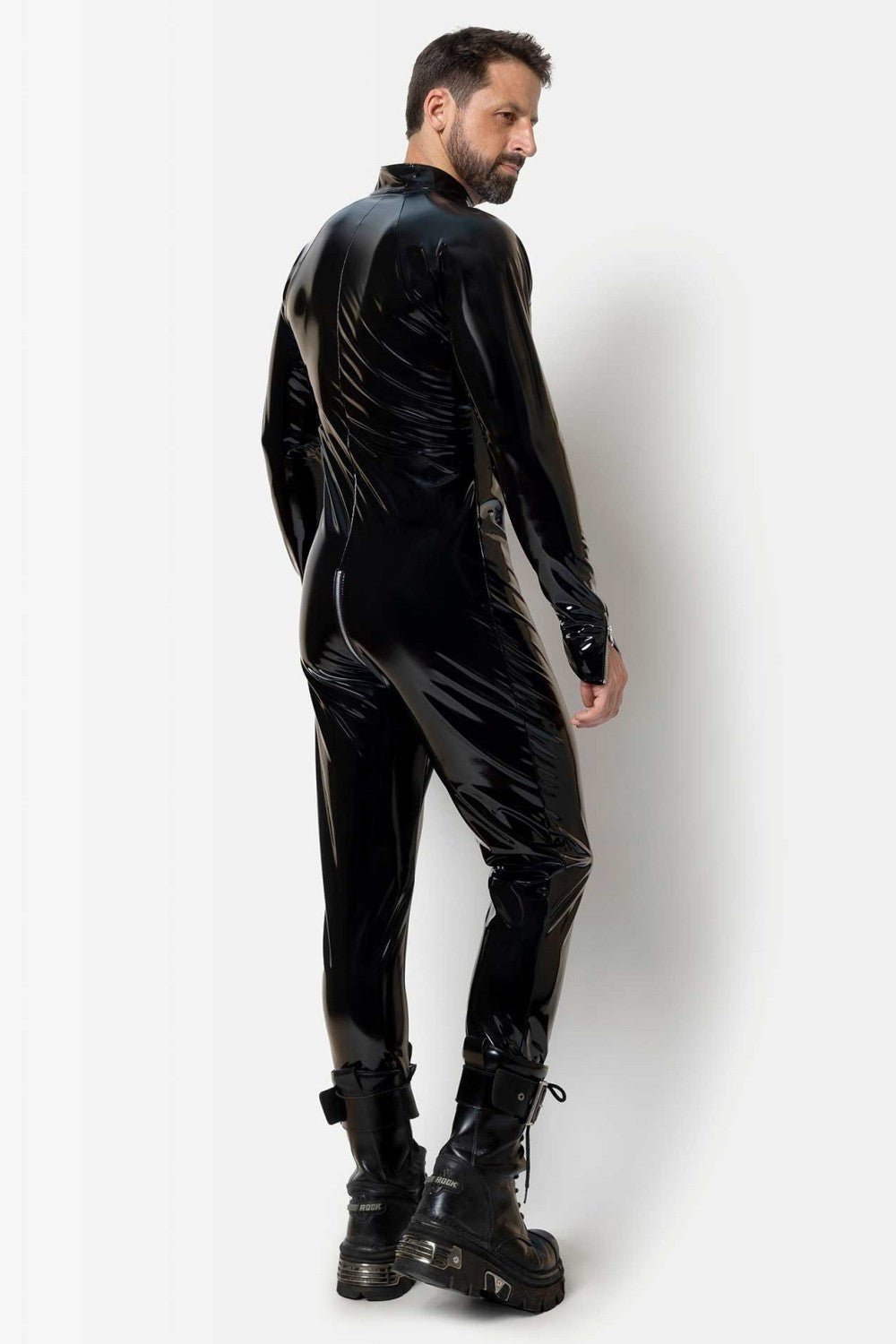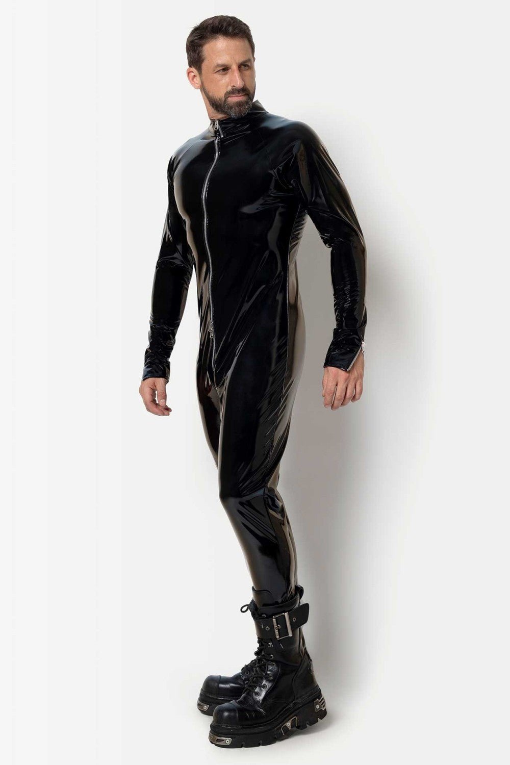Questo catsuit da uomo definitivo è realizzato in stretch verniciato di alta qualità e offre una silhouette elegante grazie al taglio a maniche lunghe. Una cerniera metallica a 3 vie continua dal collo fino alla parte superiore dei glutei facilita la vestizione e la svestizione, sottolineando la praticità e la tensione erotica del design. Le cuciture appositamente evidenziate nell'ingresso intensificano l'aspetto seducente, ideale per momenti sensuali.