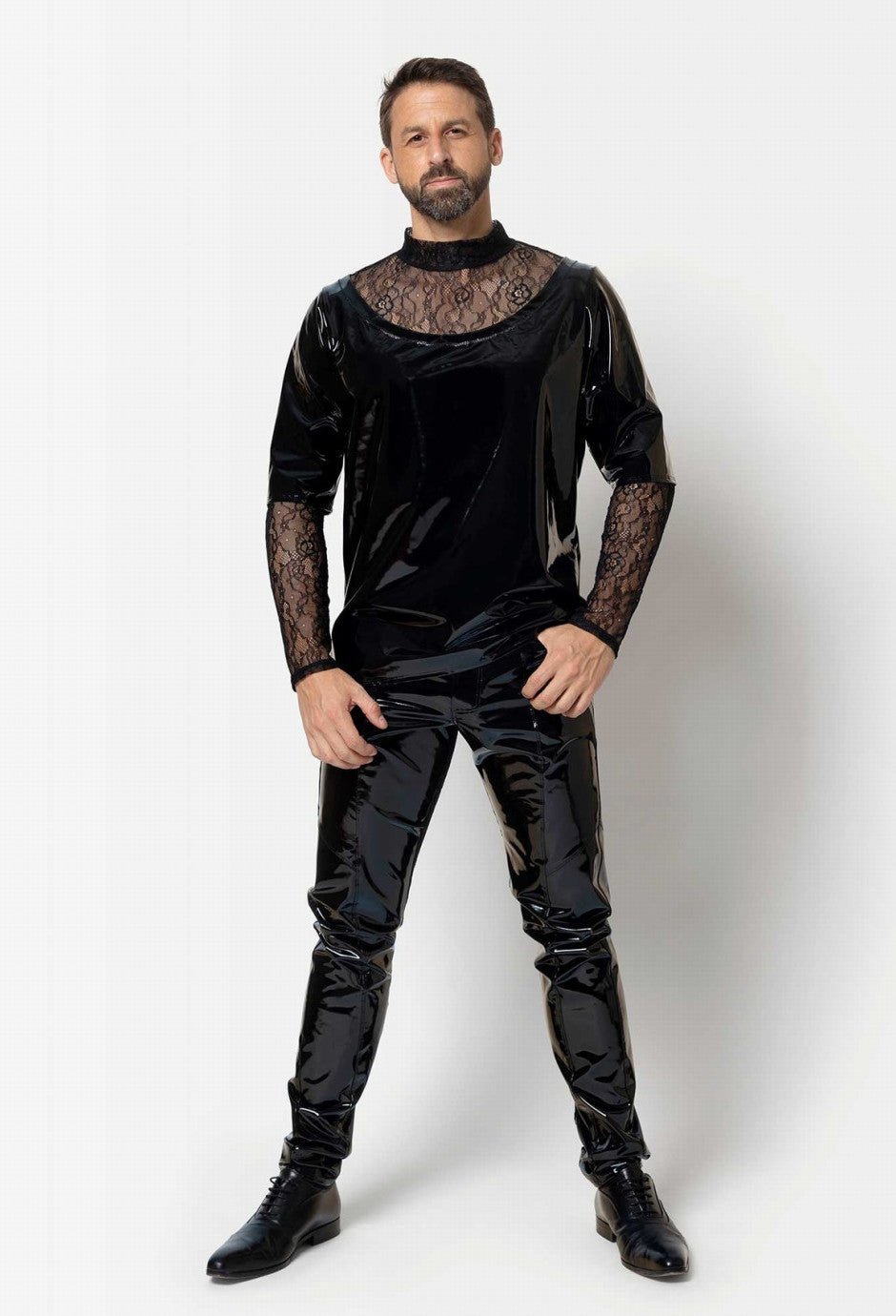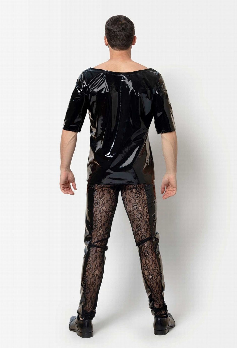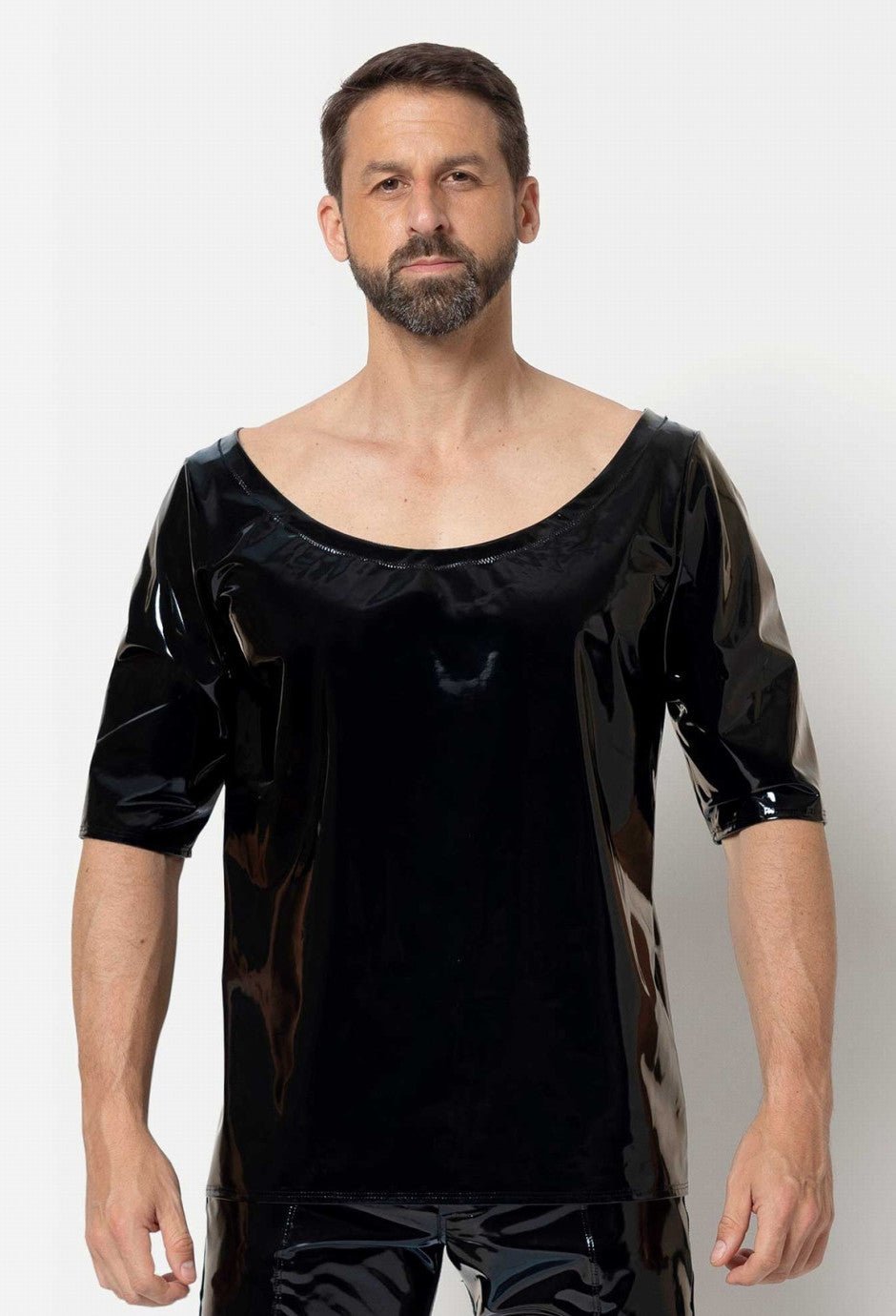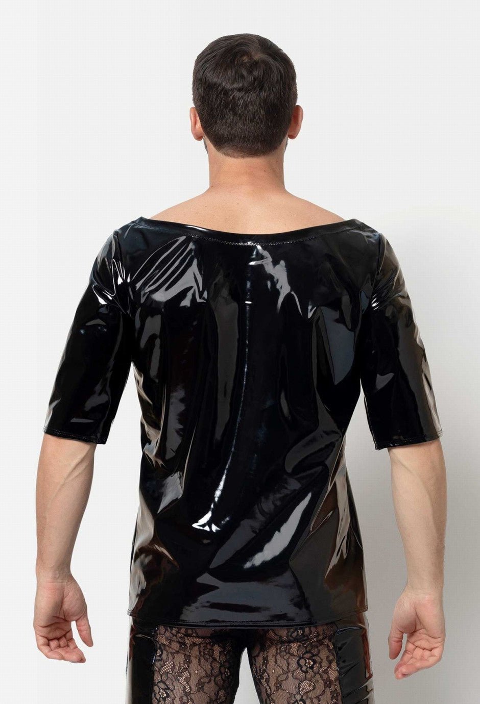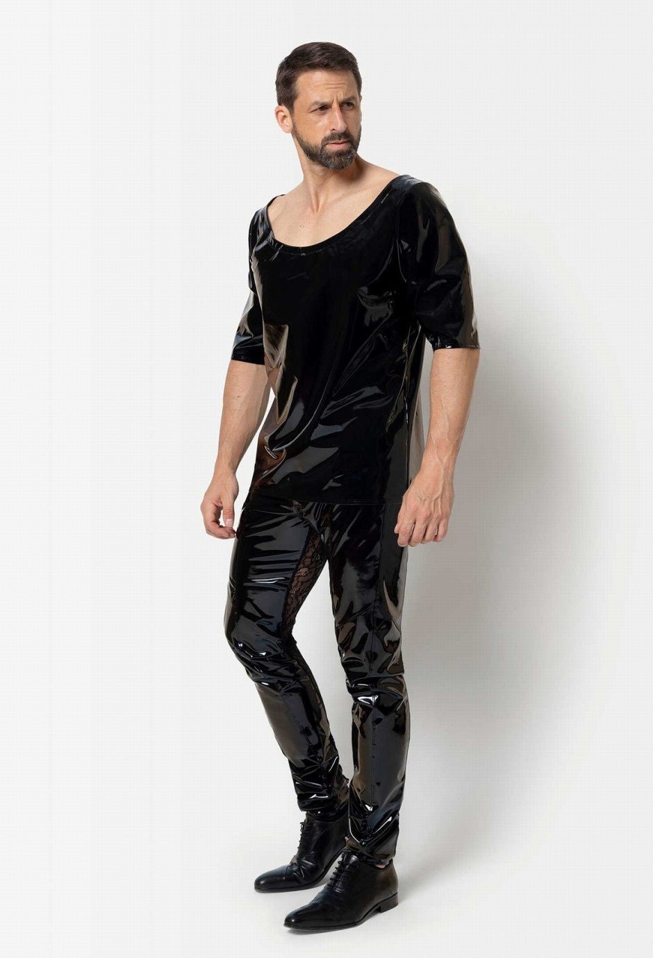 Arricchisci il tuo guardaroba con la maglietta a maniche corte Alrik di Patrice Catanzaro, ideale per black parties e altre occasioni in cui è richiesto un look fetish sexy. Questa versatile maglietta in stretch lucido nero aderisce piacevolmente al corpo grazie al sottile rivestimento lucido e all'8% di elastan.