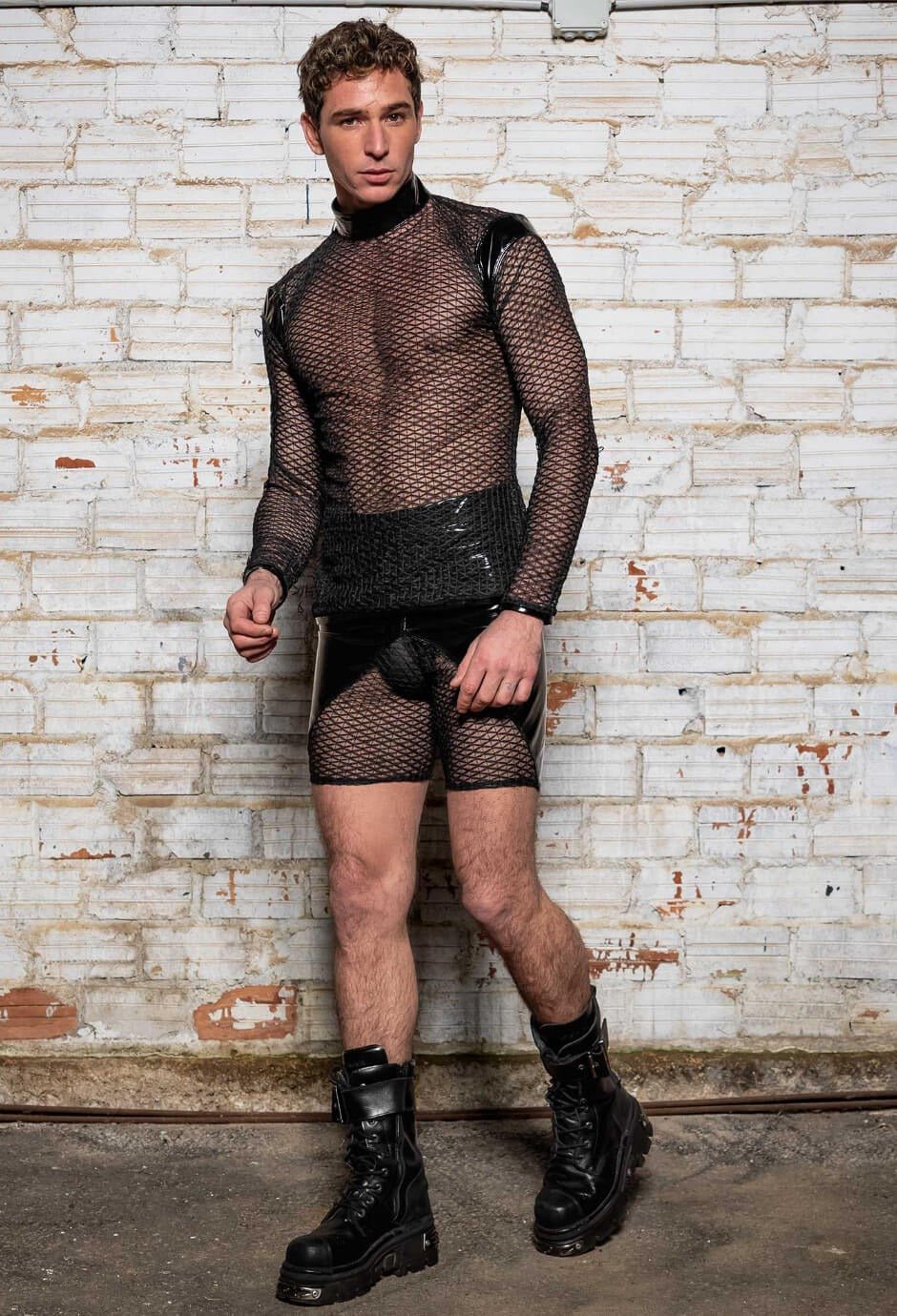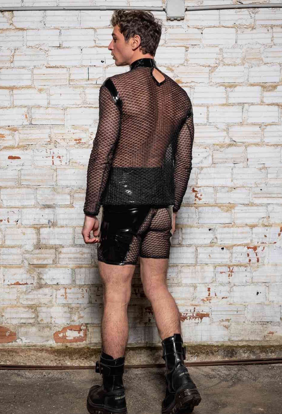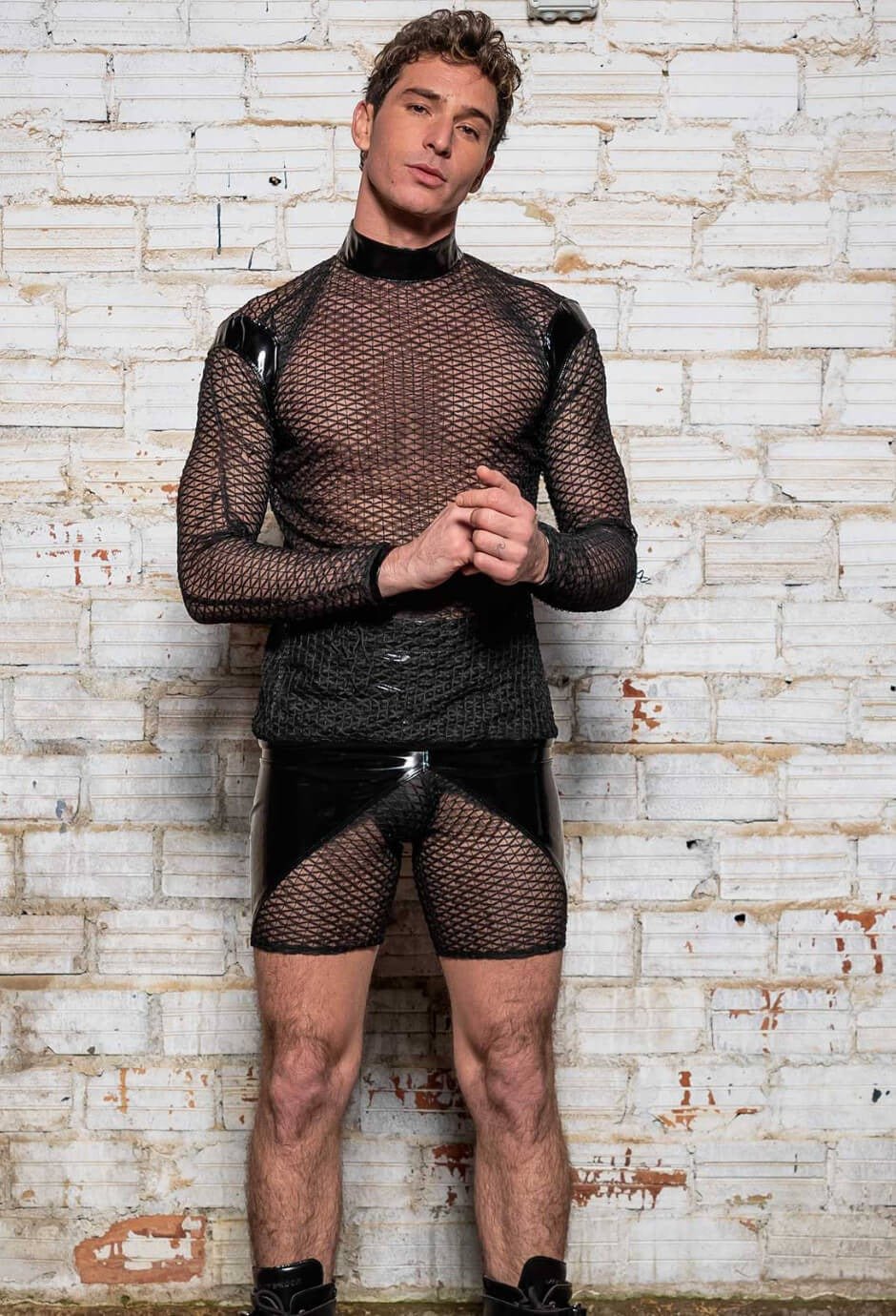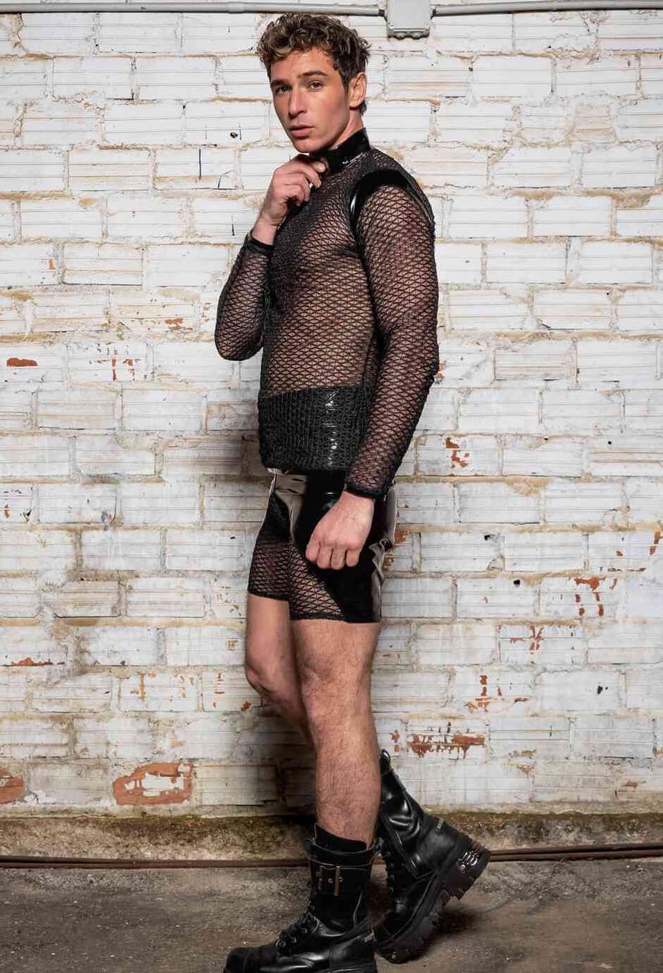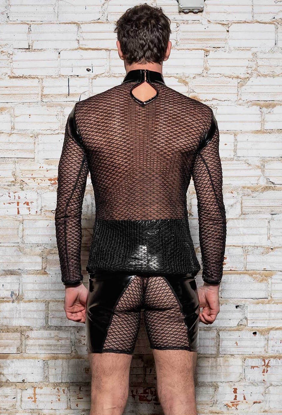Per un look trasparente che cattura tutti gli sguardi nella prossima notte di festa, Patrice Catanzaro presenta la maglietta nera trasparente a maniche lunghe da uomo 'Leif'. Questo pezzo raffinato si distingue per la sua estetica accattivante ed è parte della collezione del designer francese di edelfeticismo.