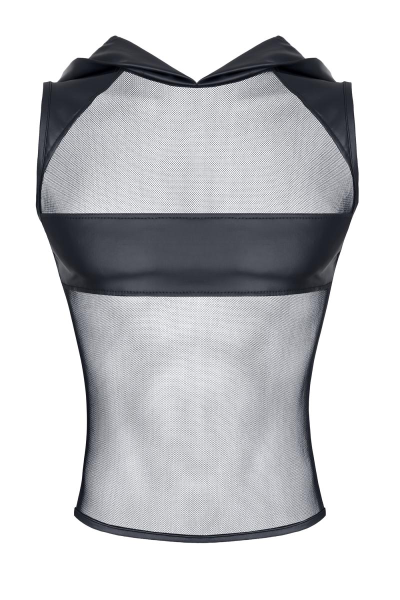 Kapuzen-Shirt, gefertigt aus dehnbarem Netz und mattem Wetlook-Material.