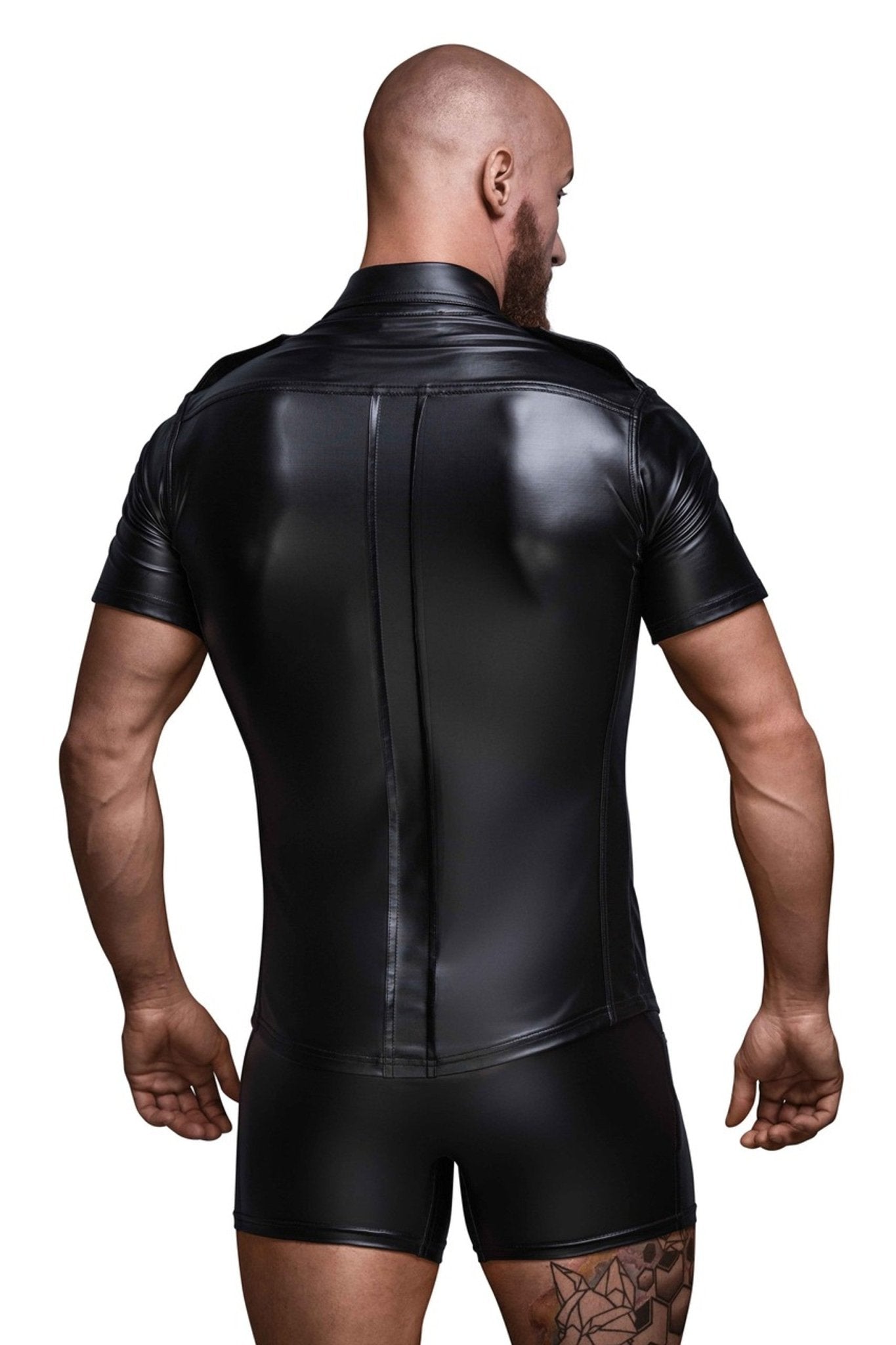 Vivi il fascino del wetlook con la camicia da uomo H011 di Noir Handmade, progettata appositamente per uomini come te che vogliono emanare sia sensualità che eleganza. Questa camicia completamente abbottonata con due tasche sul petto combina funzionalità con un design accattivante.