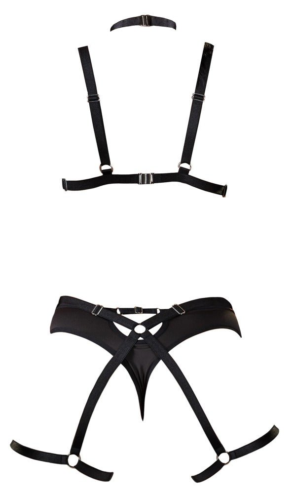 Dieses Harness-Set sieht elegant und verrucht aus und verströmt einen heißen Bondage-Vibe. Das Material ist mit Elasthan ausgestattet und hat mehrere verstellbare Schnallen für den idealen Tragekomfort.