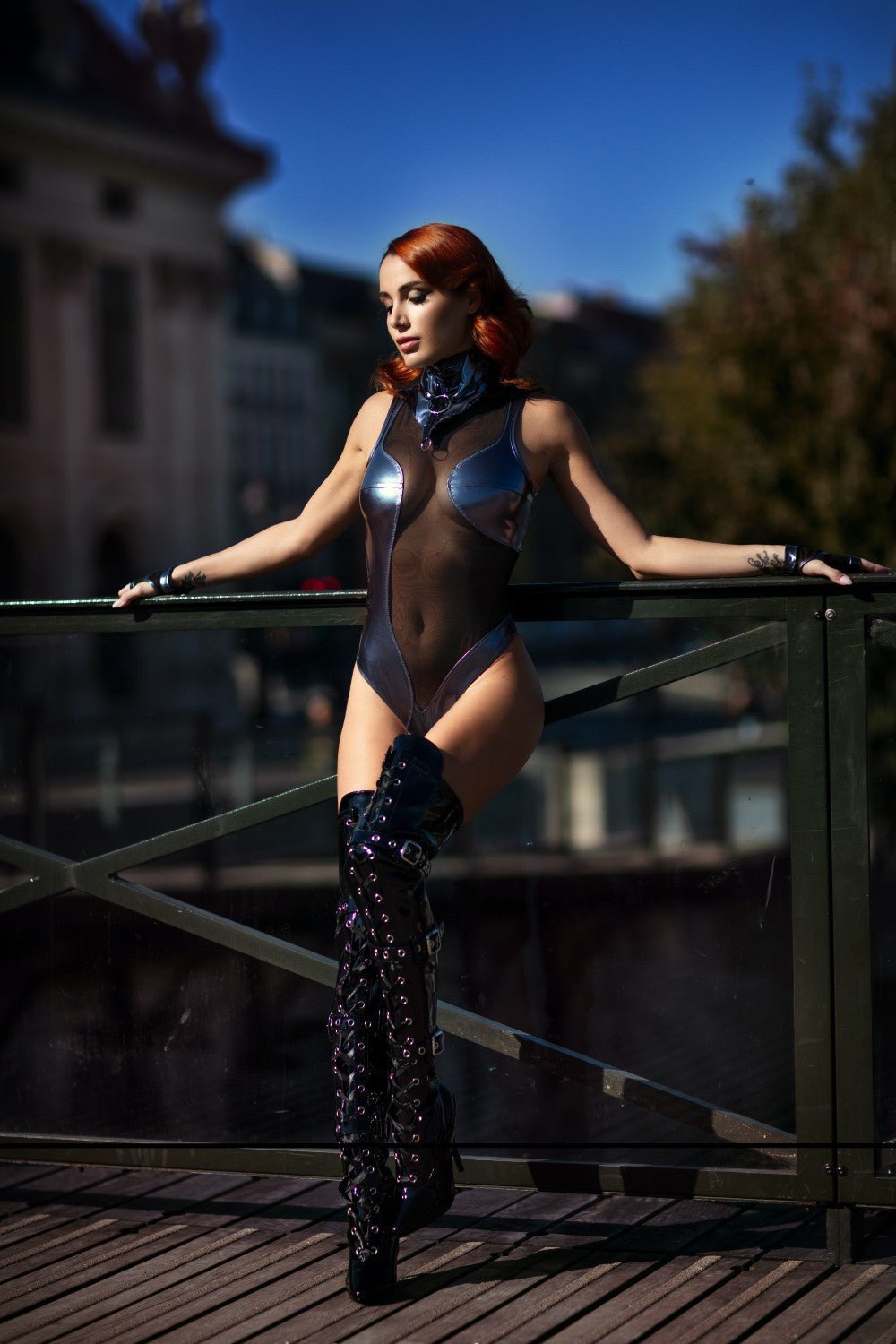 Der Bercy Body aus metallisiertem Vinyl ist ideal für besondere Anlässe oder um ein einzigartiges Statement zu setzen. Ergänze deine Garderobe mit diesem futuristischen und verführerischen Stück!